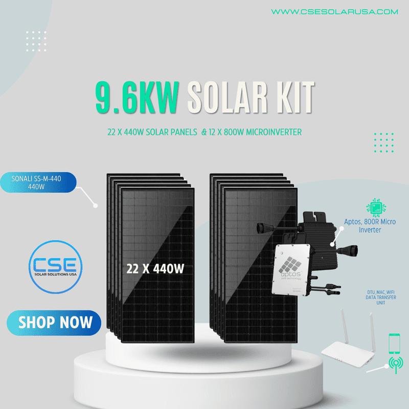 From residential rooftops to commercial installations, our 9.6 kW Solar Kit offers a complete solution for generating clean energy. With 22 Sonali 440W panels and 12 Aptos 800R Microinverters, this system provides you with the versatility and performance you need to achieve energy independence and reduce your environmental impact.