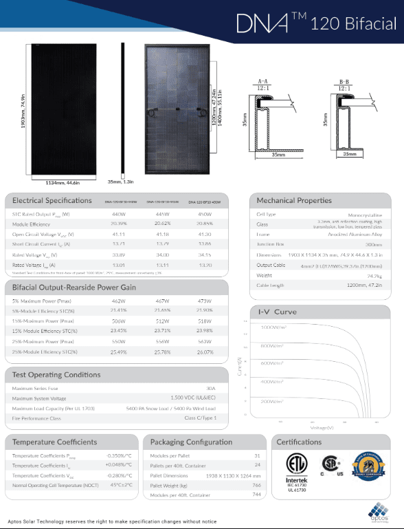 - Data Sheet: Download Data Sheet from Aptos Solar.