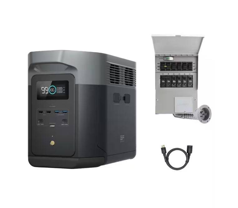 EcoFlow 120V Home Battery Backup:2048Wh DELTA 2 Max Battery Generator+Transfer Switch(306A1)+Adapter Cord for Home Use, Blackout