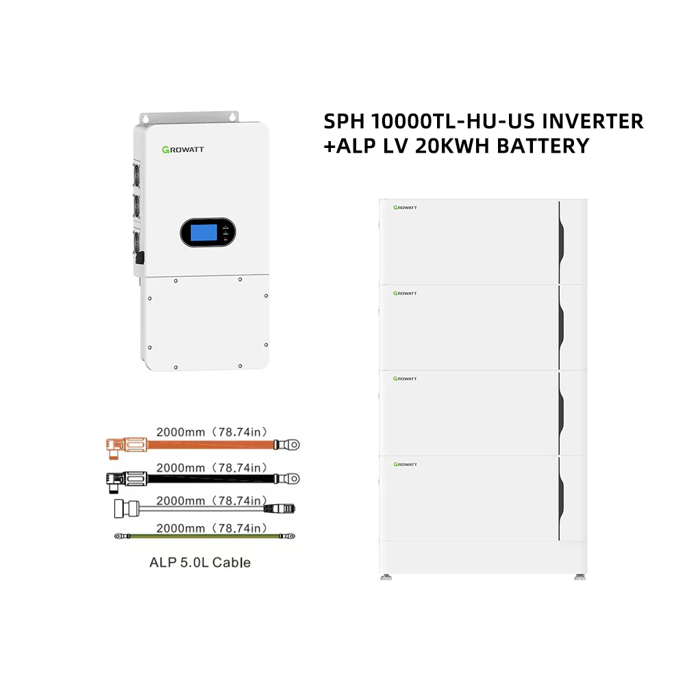 This Hybrid Growatt System Bundle features Growatt SPH 10000TL-HU-US 48V 10kW hybrid inverter and Growatt ALP LV Battery, which offers split phase output at 120/240Vac, allow maxmium 15000W PV input and It includes 3 built-in MPPTs and protection against overload, over temperature, and short circuits. Additionally, It features configurable battery charging current and voltage, as well as AC/Solar/Generator charger priority settings via its touch screen. The SPH 10000TL-HU-US 10kW hybrid inverter can compatible with both grid voltage and generator power, it automatically restarts when AC power is lost. The inverter’s smart battery charger is designed for optimal battery performance and supports WIFI/4G/Bluetooth monitoring. Additionally, it allows for programmable supply priority between battery and grid, and supports multiple operation modes: On Grid Mode, Self-consumption Mode, and Zero Export Limit.