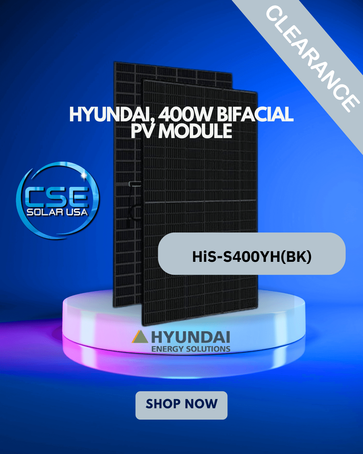 Introducing our high-performance 400W bifacial solar panel, the HiS-S400YH(BK) by Hyundai: the perfect upgrade for your renewable energy system.