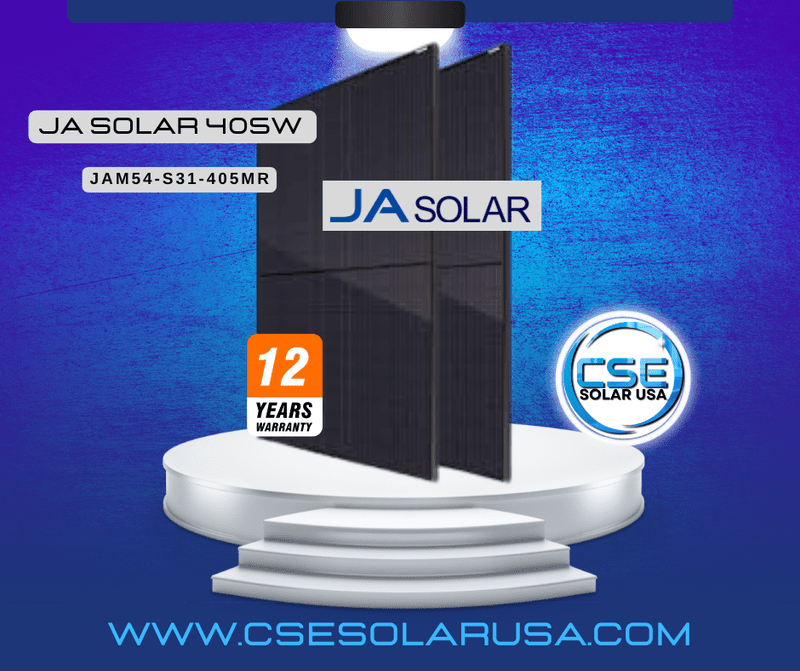 JA Solar 405w Mono PERC 54 cell module, 1200mm cables with MC4 connectors. Black Frame, Black Backsheet.