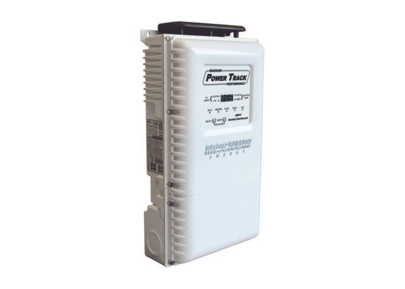 - Flexible – A large PV array of up to 6600W can be controlled by a single controller. Since the PT-100 is currently limited to 100 amps for full harvest, larger PV arrays can be used. For optimal battery charging, even during severe temperature changes, and included external temperature sensor performs automatic battery temperature compensation. Series arcs are detected, indicated, and extinguished by an integrated PV Arc-Fault Circuit Interrupter. The PT-100 is compatible with either a Magnum Panel (MP) or a Mini-Magnum Panel (MMP) (MMP). It provides space for PV and battery disconnect breakers, as well as access to them.