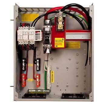 In an AC-coupled configuration with a single Sunny Island inverter, the MNE250SMA-AC-SINGLE is an E-Panel used with the MNSMA Autoformer. It’s immediately under the Sunny Island inverter. The secured loads’ panel will accept 120/240 VAC, but the utility link will only accept 120 VAC.