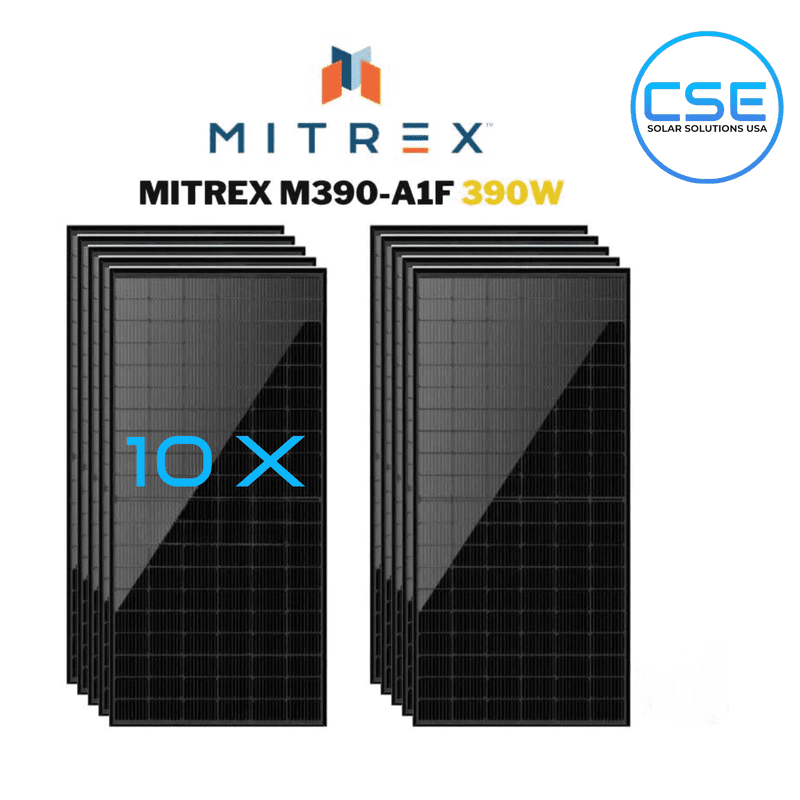 Invest in a greener future with the MITREX M390-A1F 390W Black on Black 72 Cell Mono Solar Panel package of 10 panels. Order yours today and start generating clean energy while reducing your carbon footprint.