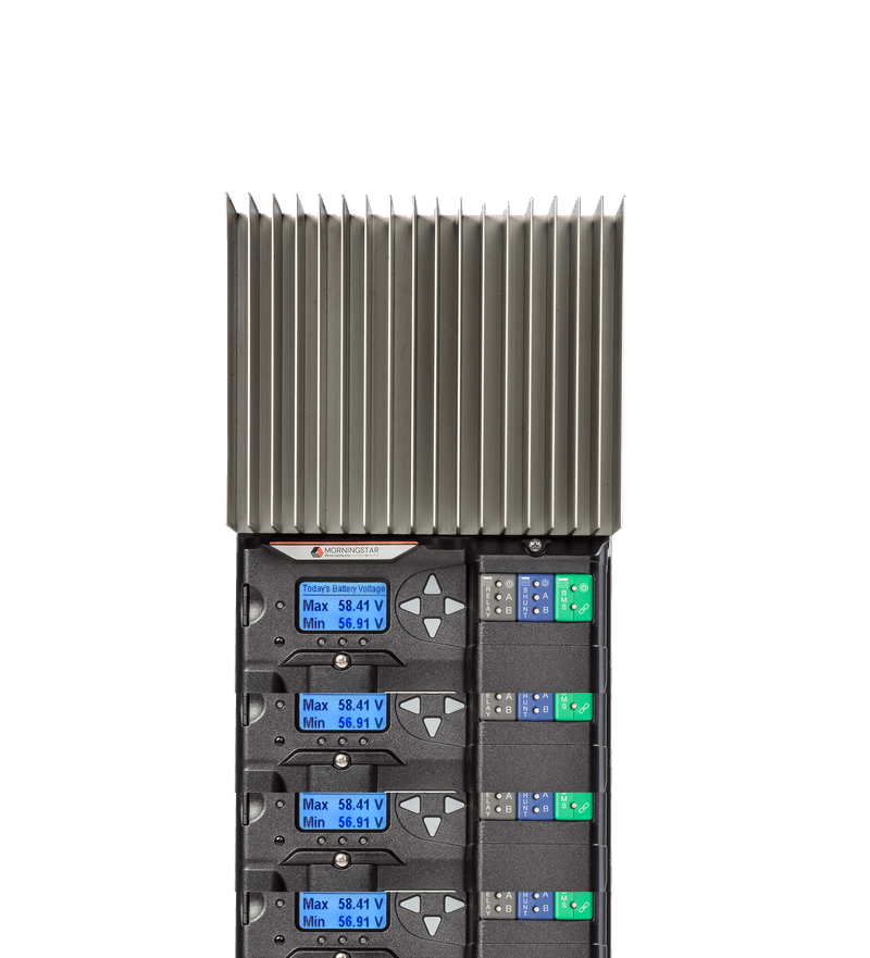 The revolutionary GenStar MPPT represents Morningstar’s best engineering efforts brought together in a single design, with full, advanced communications and control features built-in–plus the ability to add more technology to any system through our innovative ReadyRail expansion technology. The GenStar MPPT is available in 60, 80, and 100A charge rating ratings with a maximum Voc limit of 200V, and support for 12, 24, 36, and 48V batteries.