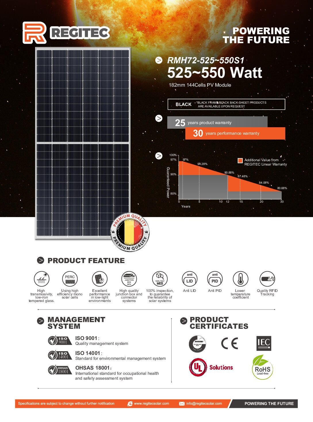 Regitec RMH72/550S1 – 550W PERC Half-Cell Solar Panel (72 half-cell)