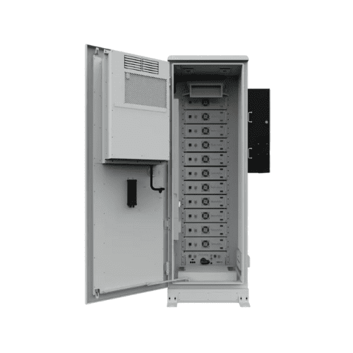 The cabinet includes an industrial-grade HVAC (heating and cooling) unit built into the door. It automatically maintains the internal temperature within the optimal range for Lithium Iron Phosphate cells, ensuring performance even in freezing winter or scorching summer.