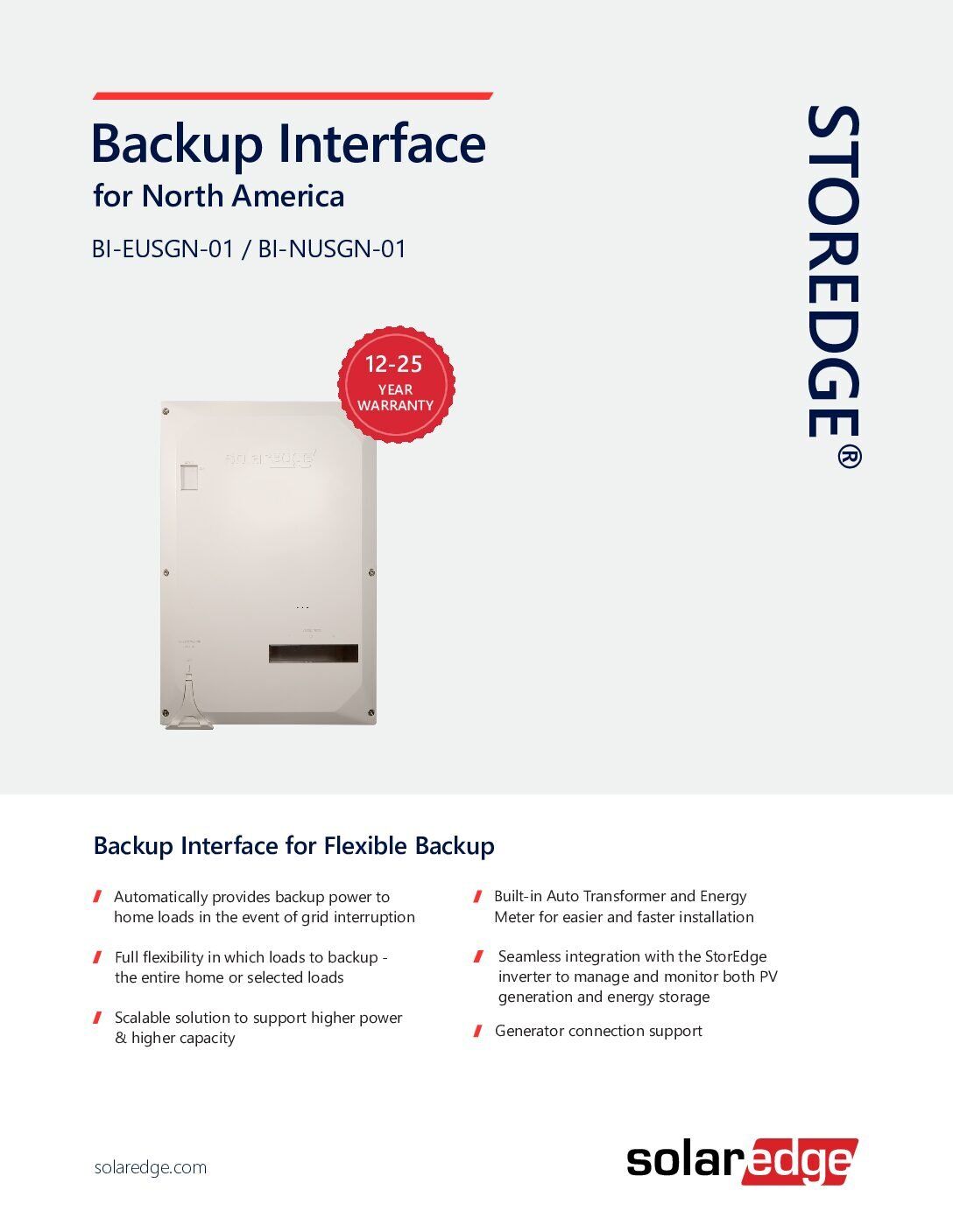 (1) SolarEdge BI-NUSGN-03 Backup Interface